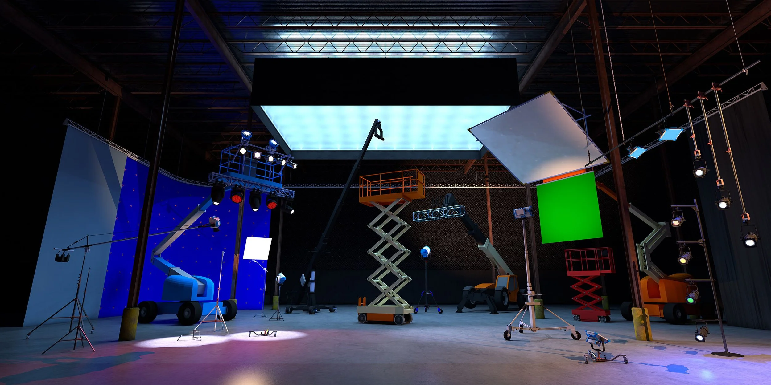 The rendering above contains almost entirely plug-in objects from IllumiViz. The plug-ins used are Scissor Lift, Boom Lift Film, Telehandler, Technocrane, Lightbox, Curtain Track, Lighting Stand, Lighting Stand Large, Grip Frame, Pipe and Base, Side Arm, Telescoping Hanger, Hangpoint Simple, iBeam, Beam Column, and Roof Joist. Not all plug-ins are currently available for sale, and some might never make it.