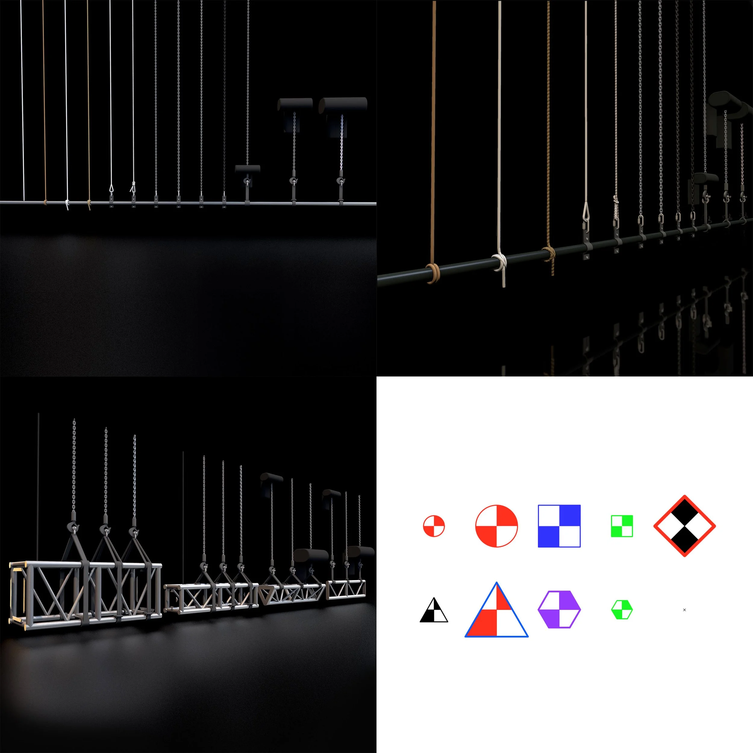 Similar to the built-in hoist tool, but without all the fluff. No symbols. No classes. No Braceworks. No complex records. Just some very basic hybrid hang points. Options for pipe, truss, or just chain. Pipes have options for ropes, clamps, and chains to spansets. Trusses are all chains to spansets. Trusses have type and size options with square, triangle and flat for types, and 12”, 16”, 20.5” and 30” for size. Points with chains can add simple motors top or bottom. Several detail settings from just a line to more detailed 3D. Several 2D shapes for plan views with size and color options. Plans to add labels.