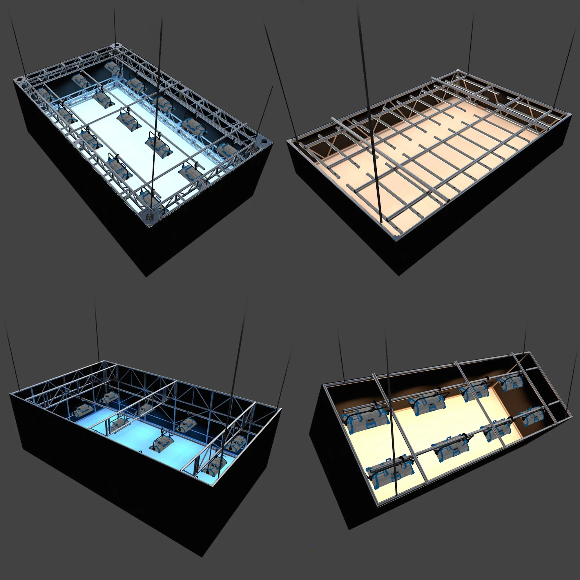 Lightbox builds diffused soft boxes used frequently in film and television lighting. The boxes are customizable for size, structure type (square or round tubing, flat truss, 12” or 20.5” truss with either truss or pipe bottoms, and SpeedGrid), diffusion, skirts, control grids, and whether the box has a top or not. Textures can be applied to all of the parts through either classes or through the menus. Basic rigging is also available (this will hopefully be improved).