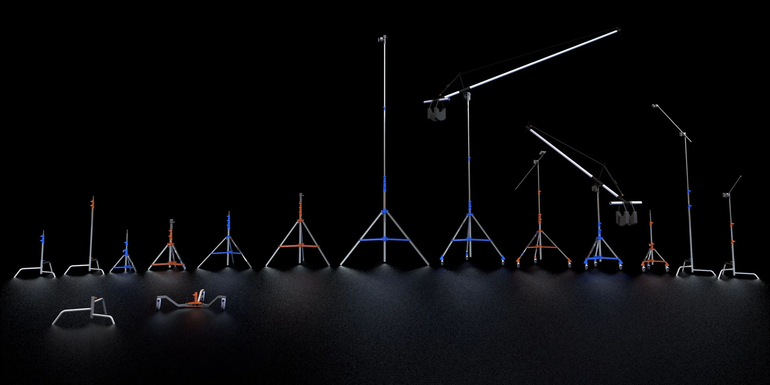 A collection of stands used in lighting/grip. Options for type of stand, height, wheels, and some arms.